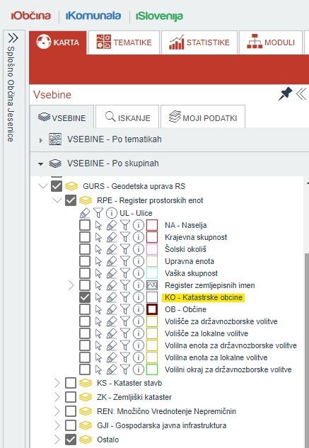 Omenjena vsebina (sloj) se nahaja v podmapi  GURS -> Geodetska uprava RS -> RPE – Register prostorskih enot -> KO