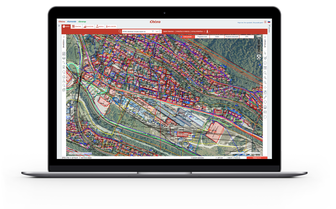- Parcele (parcelne številke in urejene oz. ostale grafike parcel),