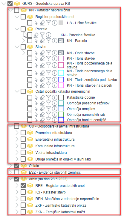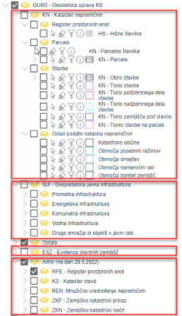 - Ustvarimo sloj KN – Kataster nepremičnin, ki vsebuje: