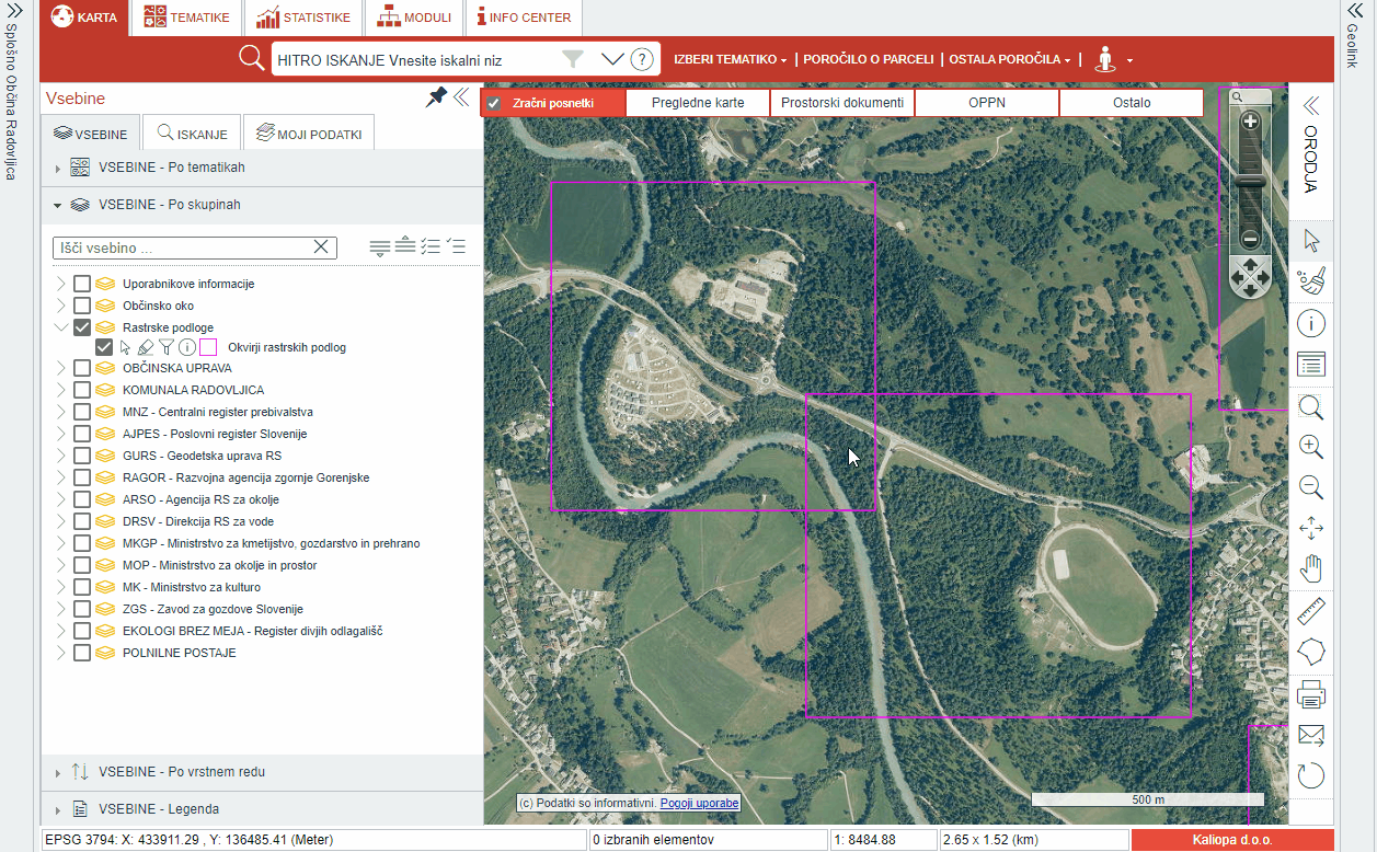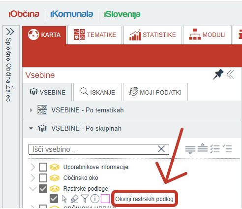 Na vse GIS portale iObčina in iKomunala smo dodali novo Vsebino Okvirji rastrskih podlog: