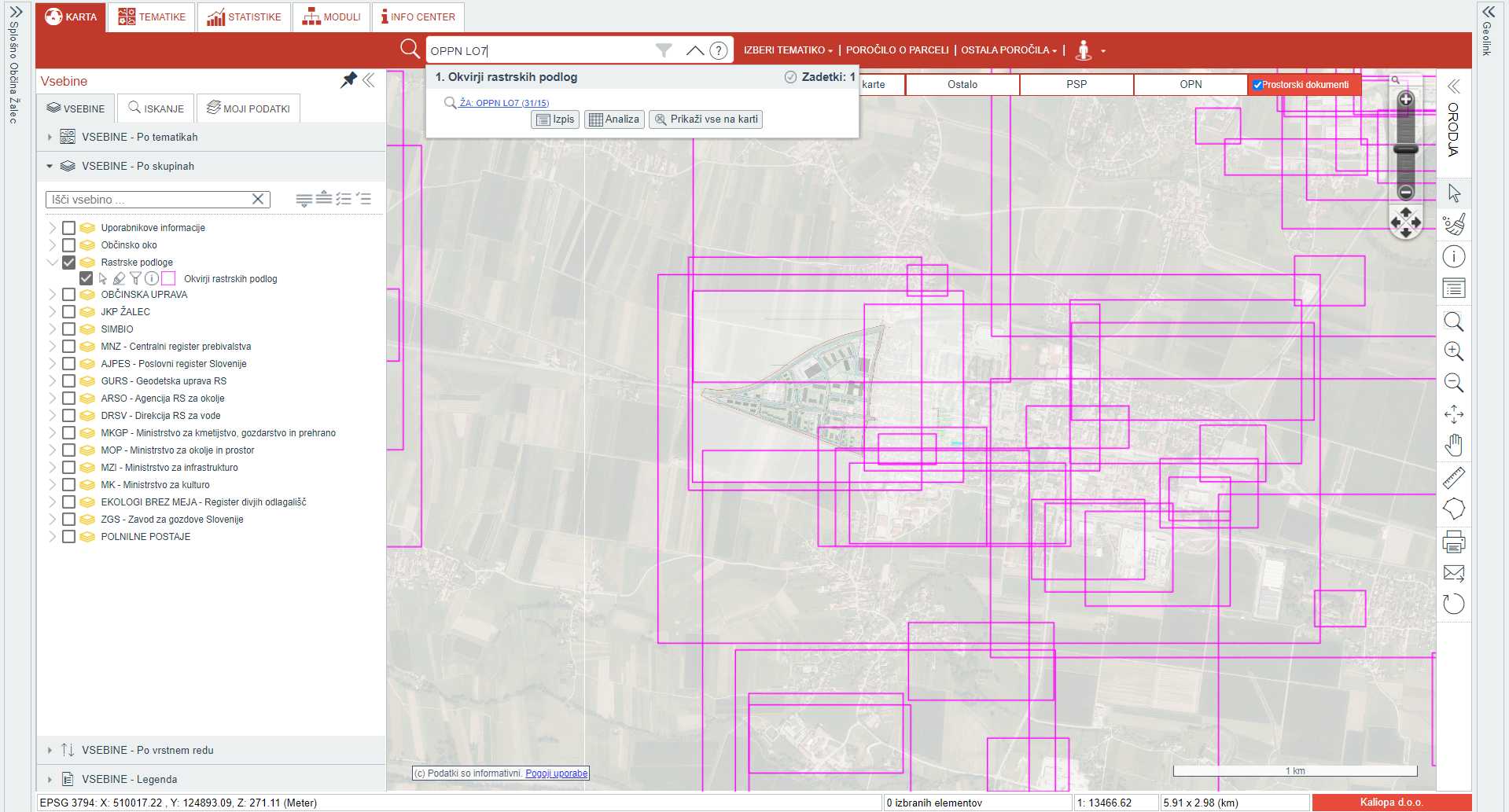 Namen in cilj je kar najhitreje najti in »vključiti« ustrezno rastrsko karto v GIS iObčina/iKomunala.