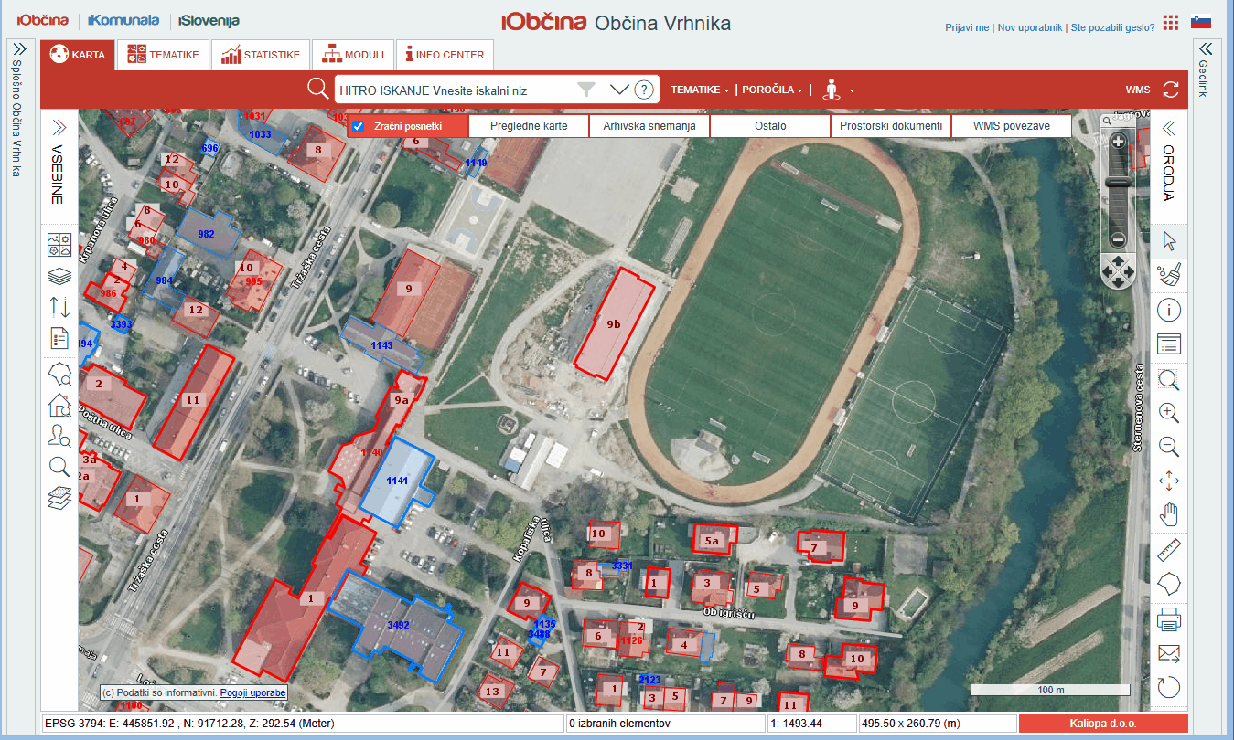 V iObčini in iKomunali lahko za stavbo, del stavbe ali parcelo s klikom na ikono € odprete neposredno povezavo do novega portala Evidence vrednotenja nepremičnin GURS.