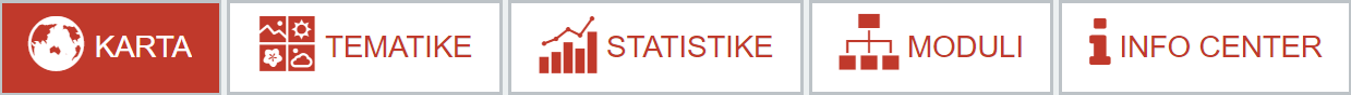 Glavni meni se nahaja na zgornji strani uporabniškega vmesnika. Sestavljen je iz štirih zavihkov, najpogosteje pa uporabljamo zavihek karta, ki prikazuje grafični prikaz prostorskih podatkov. Če je zavihek obarvan rdeče, pomeni da se nahajamo v tem zavihku.